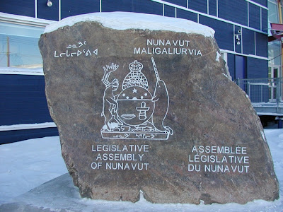 In front, this stone celebrates the autonomy of Nunavut