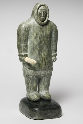 Clyde River artists use a light green stone, obtained from the area of northern Baffin Island, for their carvings; however, the main resource is old whalebone found along nearby beaches. In fact, this community is now the centre of whalebone carving in the Arctic.