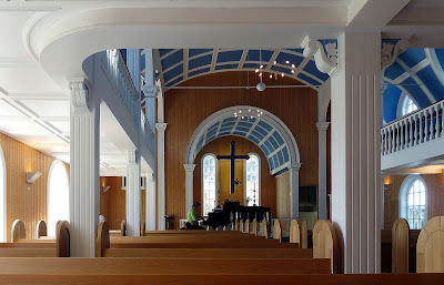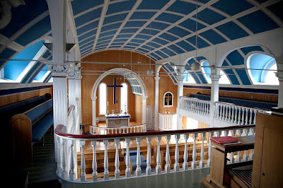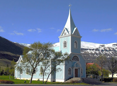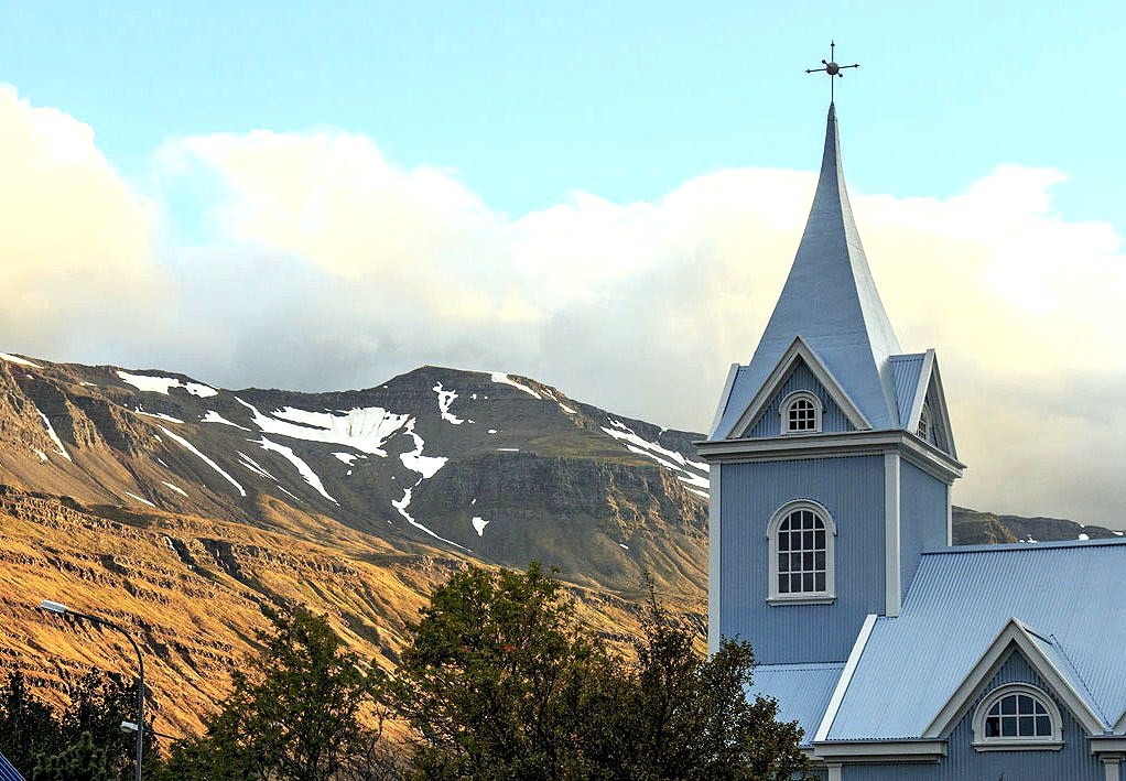 Legend says the church, from the 13th century and dedicated to St. Mary, has been moved several times; it was surely moved into Seyðisfjörður in 1921, but after so many changes and a fire no one knows what remains from the original medieval church, maybe just some of the wooden walls.