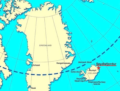 Coordinates: 65°15′ N, 14°0′ W, just one degree below the arctic circle.