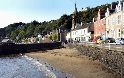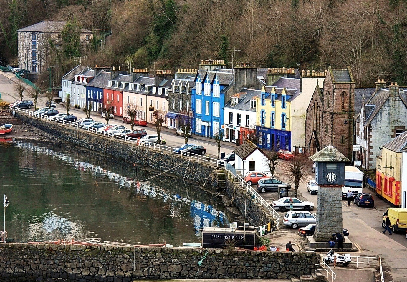 The Main Street runs by the bay to the Caledonian Macbrayne ferry pier. Back and upwords, Argyll Terrace is the historic Victorian street.
