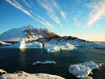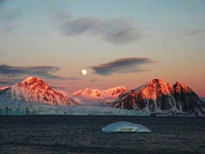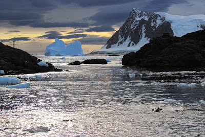 Two Glaciars - Uspallata and McClary - face Barry Island. Now, just look how magnificent is Marguerite Bay and its glaciars at sunset, or during the midnight sun by the antarctic summer solstice: