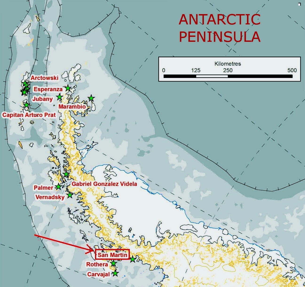 Base San Martín is a permanent, all year-round Antarctic base for scientific research on climate, seismology and geodesics.