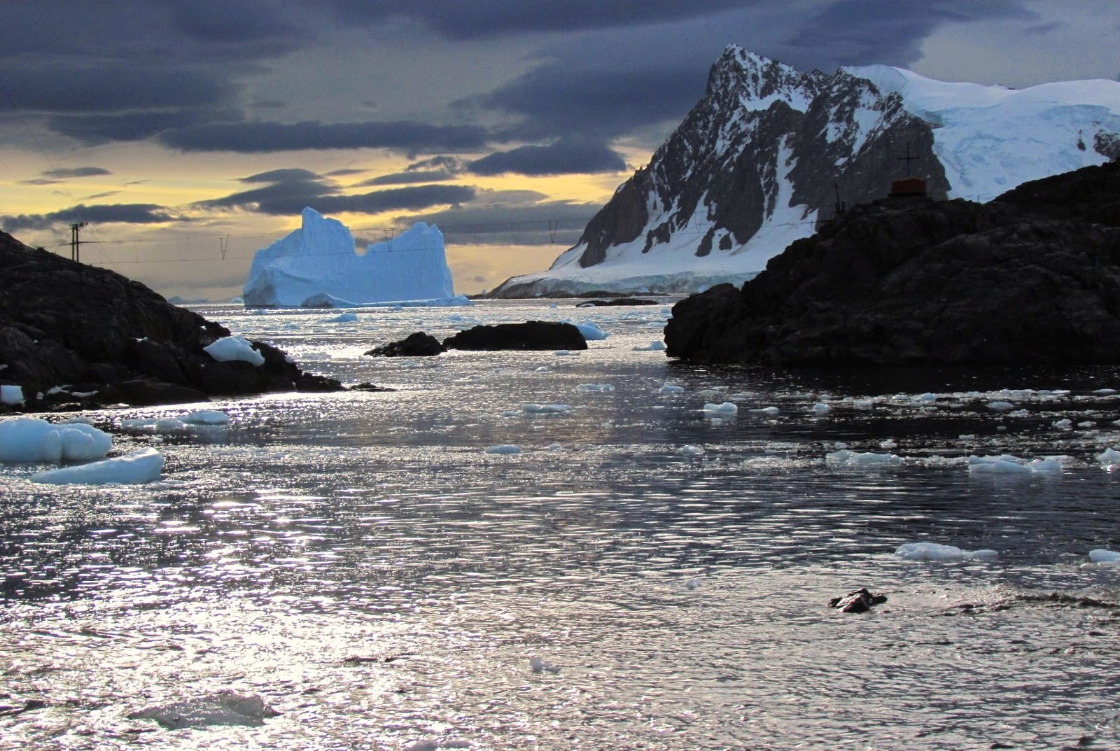 Marguerite Bay is a large and deep bay, but the access is quite difficult most of the year because the water surface is frozen, or dangerously covered with moving ice floes. Small islands, underwater cliffs and rocks compose a net of narrow navigable canals. Only during the short antarctic summer is the route easy for supply ships as well as for tourist cruises or scientific expeditions.