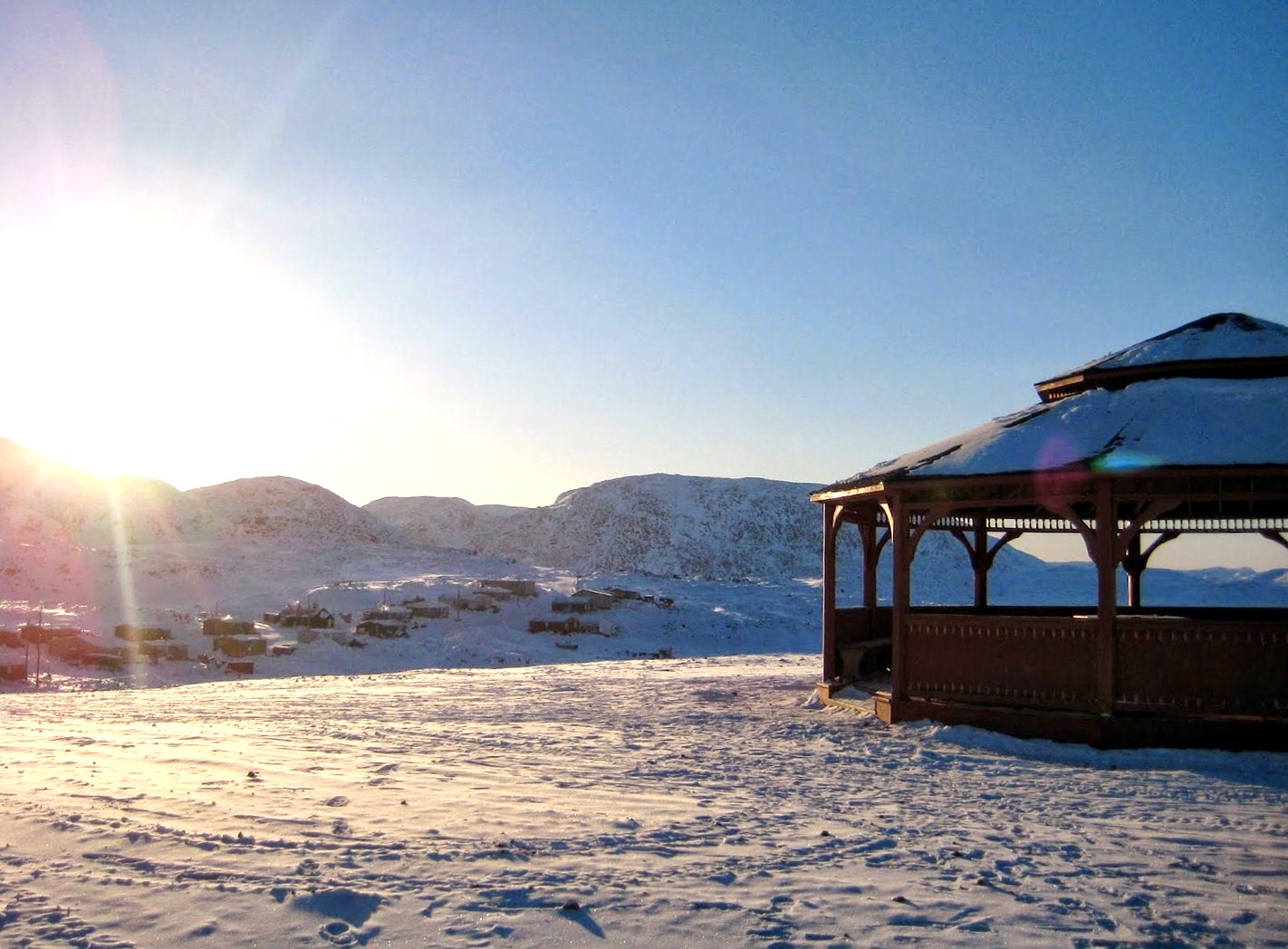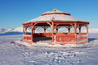 Recently a wooden red gazebo was installed at a view point; it is an unusual landmark for such a northern community, but they love it.