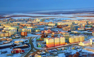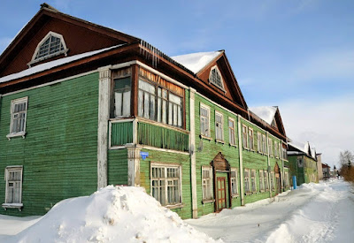 Most of the Russian arctic ports and towns are industrial nightmares and were only five decades ago in the vicinity of Gulag camps and/or related soviet structures. That scar has marked them, it seems, forever. Building quality is usually quite miserable - traditional wooden houses in ruins, horrid decaying apartment blocks, grand stalinist neo-classic monsters, coal and oil extraction plants bringing pollution and ugliness, zero urban design.