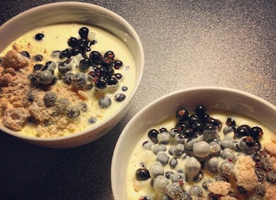 Local delicacy: vanilla cream with macaroon and fresh crowberries. You can't just have seal day after day.