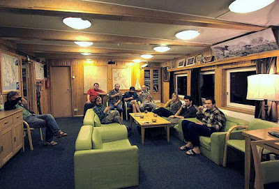 The main building of the station contains accomodation providing sleeping quarters for 25 persons. The main building also contains the kitchen, living room, library, six laboratories, a radiooperator room, a medical bay, two bathrooms, toilets, and a warehouse for food and equipment.