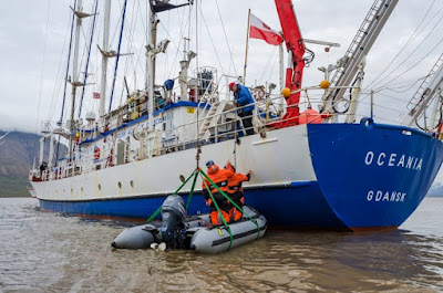 The tall ship RV Oceania is a research vessel of the Polish Academy of Sciences, equipped with several laboratories.