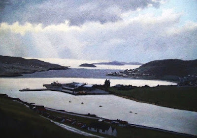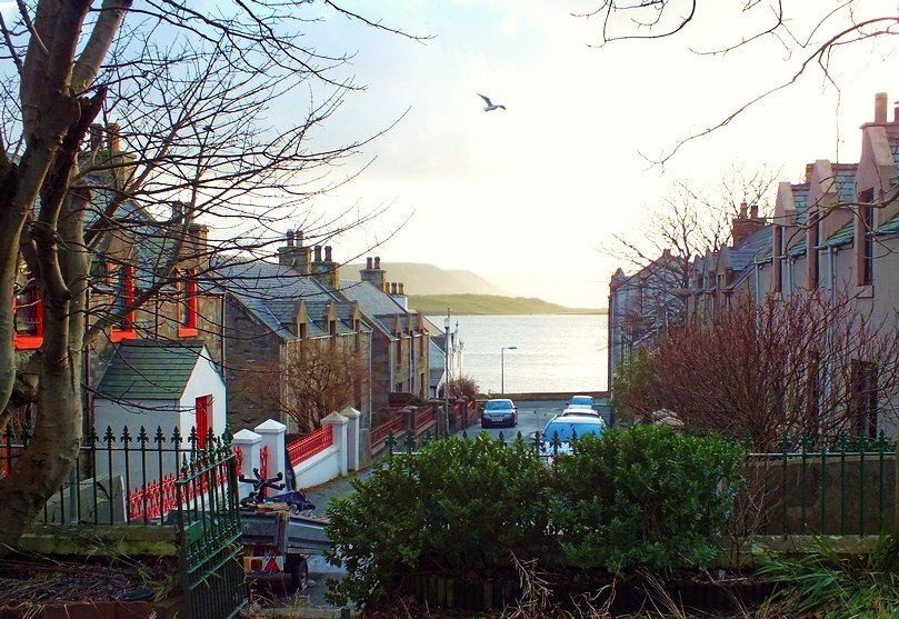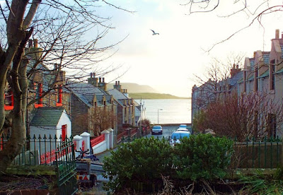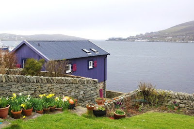 Lerwick is a vibrant little town, I gave notice of it here on U.T.. Scalloway, on the west coast of Mainland, is the second largest settlement on the islands, a pretty village of about a thousand people with a growing number of visitors. They can find there a Hotel, Guest Houses, Museum, Castle, History, a coloured waterfront, and a lively little port, well known since the Hanseatic era - for Scalloway was at the time a sheltered harbour on a northern route from Hamburg and Bergen.