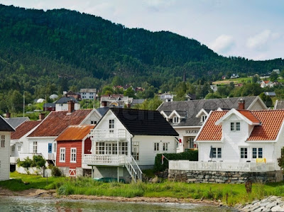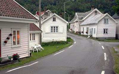 Most houses are painted red or white, as usual in Norway's arctic and sub-arctic latitudes.