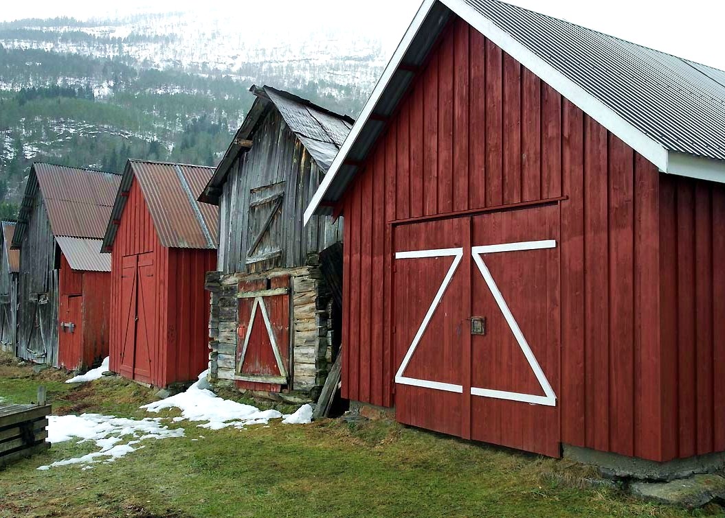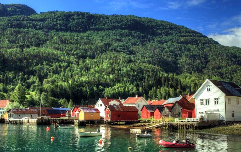 Along the beachfront, the boathouses were owned by local farmers and merchants, who took their products by boat to towns and markets around the fjord.