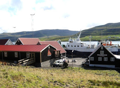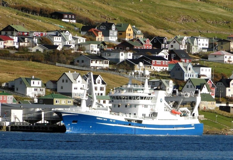 The new ferry sailing past Tvøroyri.