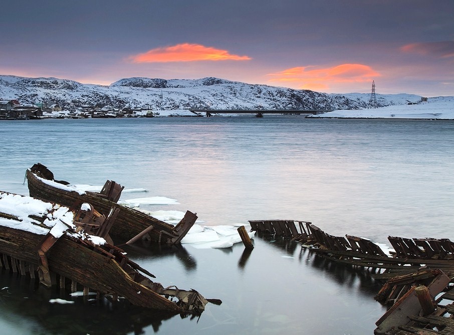 Teriberka belongs to the Murmansk district, and was built on a flat tundra terrain.