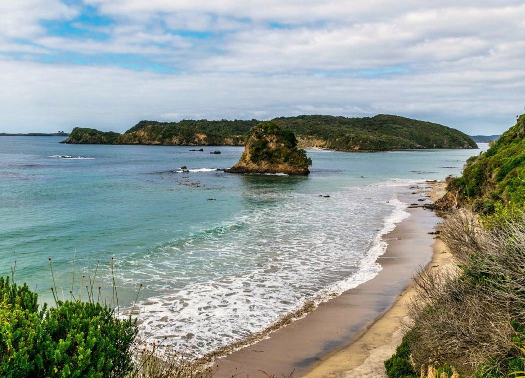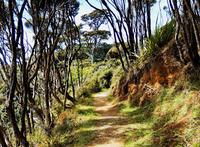 The circuit follows open coastline, along exposed shores of windswept trees and brush, crossing the forested interior of the island and winding along sheltered shores, inlets, bays and mudflat. In its mid section, the track crosses steep hills covered in dense forest, with well-maintained and gravelled trails.