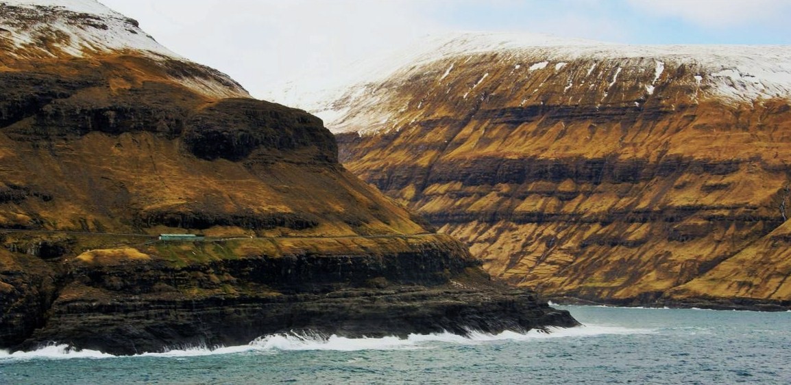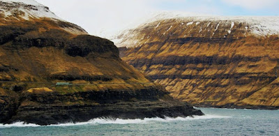 The Sundini Straight opens to the Atlantic Ocean at both ends; the Northern entrance is quite steep and wild: