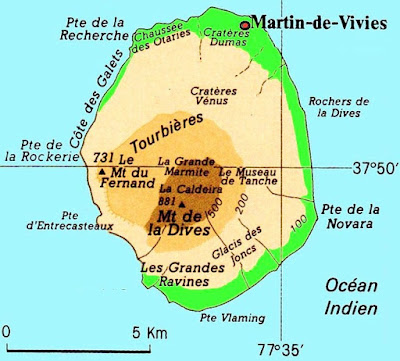 The island's top plateau, les Tourbières, is surrounded by two hilltops and a volcanic crater.