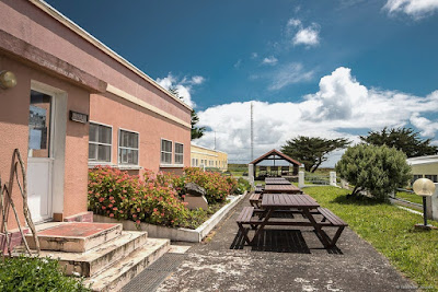 The french base lies on the north coast of Amsterdam Island, spreading down a gentle slope, 100 m up from the sea.