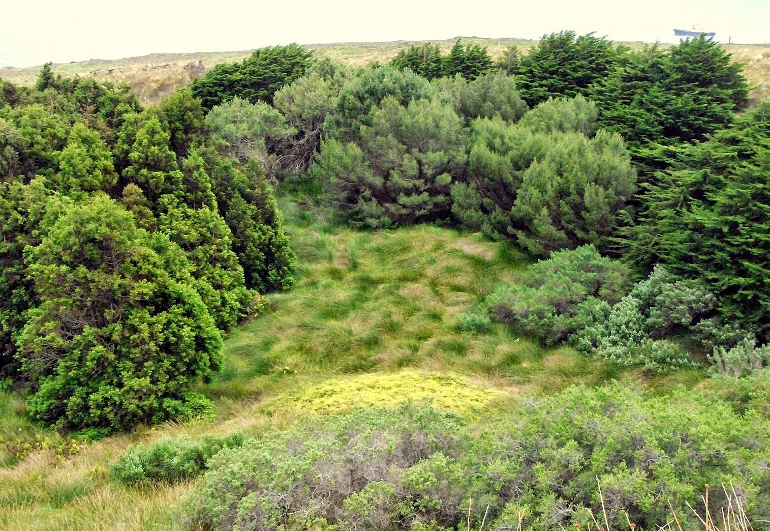 At present the "Grand Bois" (The Large Woods) is the only remnant of Phylica forest, a preserved natural area which has been fenced and bordered by cypresses for protection.