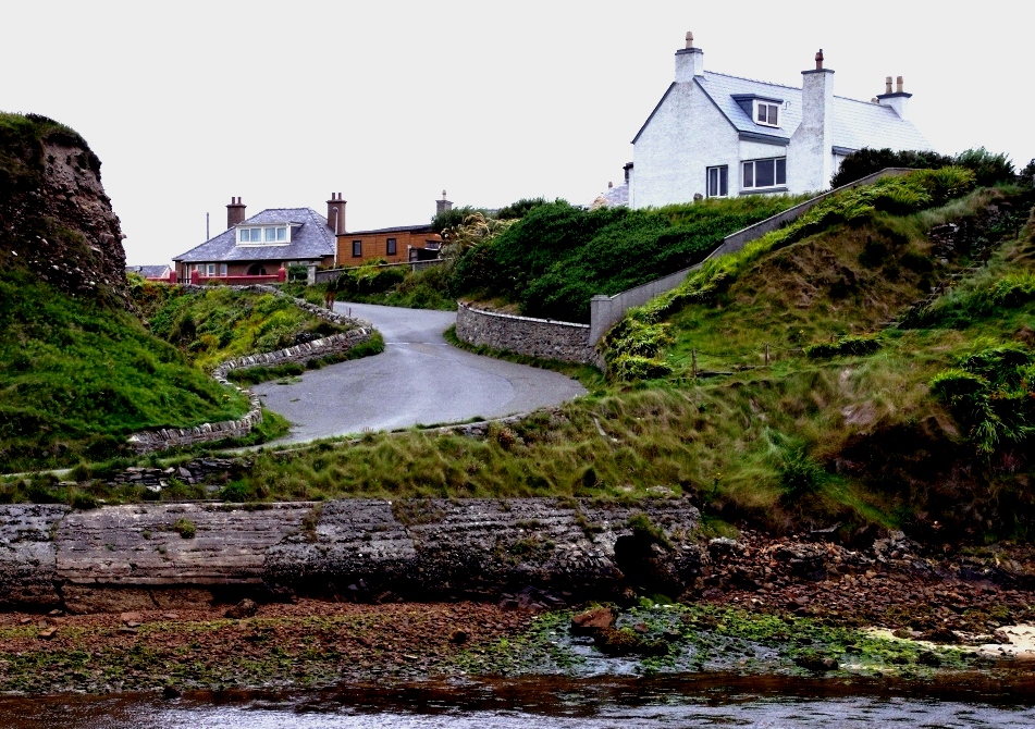 With a decreasing population, many of the houses in the village are now to sell, to rent or for accommodation of visitors. Still, there is an art gallery, a luxury tweed weaving factory, one or two knitwear workshops, and a café/restaurant perched on the cliff.