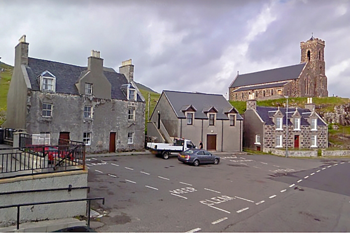 Castlebay's Pier Road, running down from The Square.
