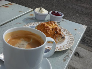 With tea or coffee, this scone &al must taste delightful viewing the bay.